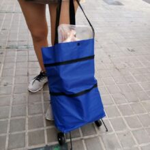 Constructed of premium, durable-nylon fabric and PVC, our trolley bag and also features wheels. It is waterproof and wear-resistant, providing durability and protection for the heaviest of grocery hauls (and rainiest of days).